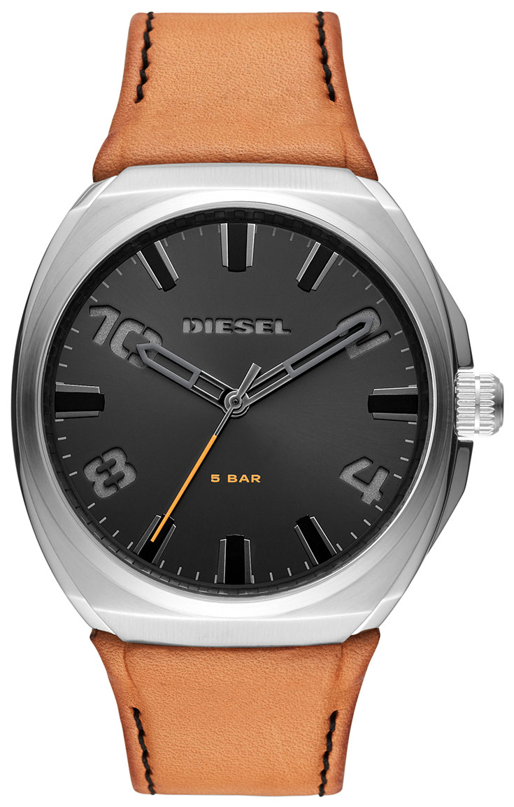 Diesel Stigg DZ1883 on tyylikäs miesten kello. Kellon hopeanvärinen ruostumattomasta teräksestä valmistettu runko on leveydeltään 48 mm ja paksuudeltaan 11 mm. Ruskea nahkaranneke ja hienona yksityiskohtana toimiva keltainen sekuntiviisari tekevät kellosta ulkonäöllisesti erittäin toimivan kokonaisuuden. Diesel-kelloille myönnetään 2 vuoden takuu ja ne toimitetaan valmistajan alkuperäisessä rasiassa.