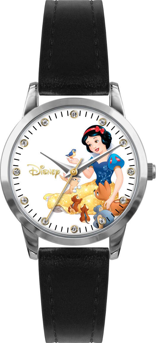 Disneyn ihastuttava Lumikki kello D3901. Kellon rungon leveys on 30 mm ja kellossa on kuvallinen kellotaulu ja musta ranneke. Disney lastenkellot toimitetaan valmistajan alkuperäisessä rasiassa ja niille myönnetään 2 vuoden koneistotakuu.