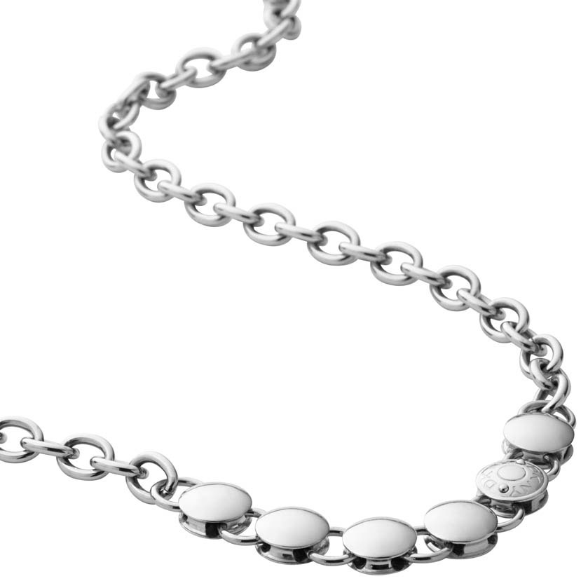 Ruostumattomasta teräksestä valmistettu ketju on koristeltu täysmetallisilla pyöreillä paloilla. Koru on pituudeltaan 45cm. Lukko on tehty kahdesta näyttävästä osasta, jotka ovat molemmat koristelty DKNY:n omilla kirjaimilla. Koru on erittäin näyttävä asutste esimerkiksi kaupunki-iltaan. Kaikki DKNY-korut toimitetaan valmistajan alkuperäisessä lahjapakkauksessa. Katso myös muut DKNY -tuotteemme.