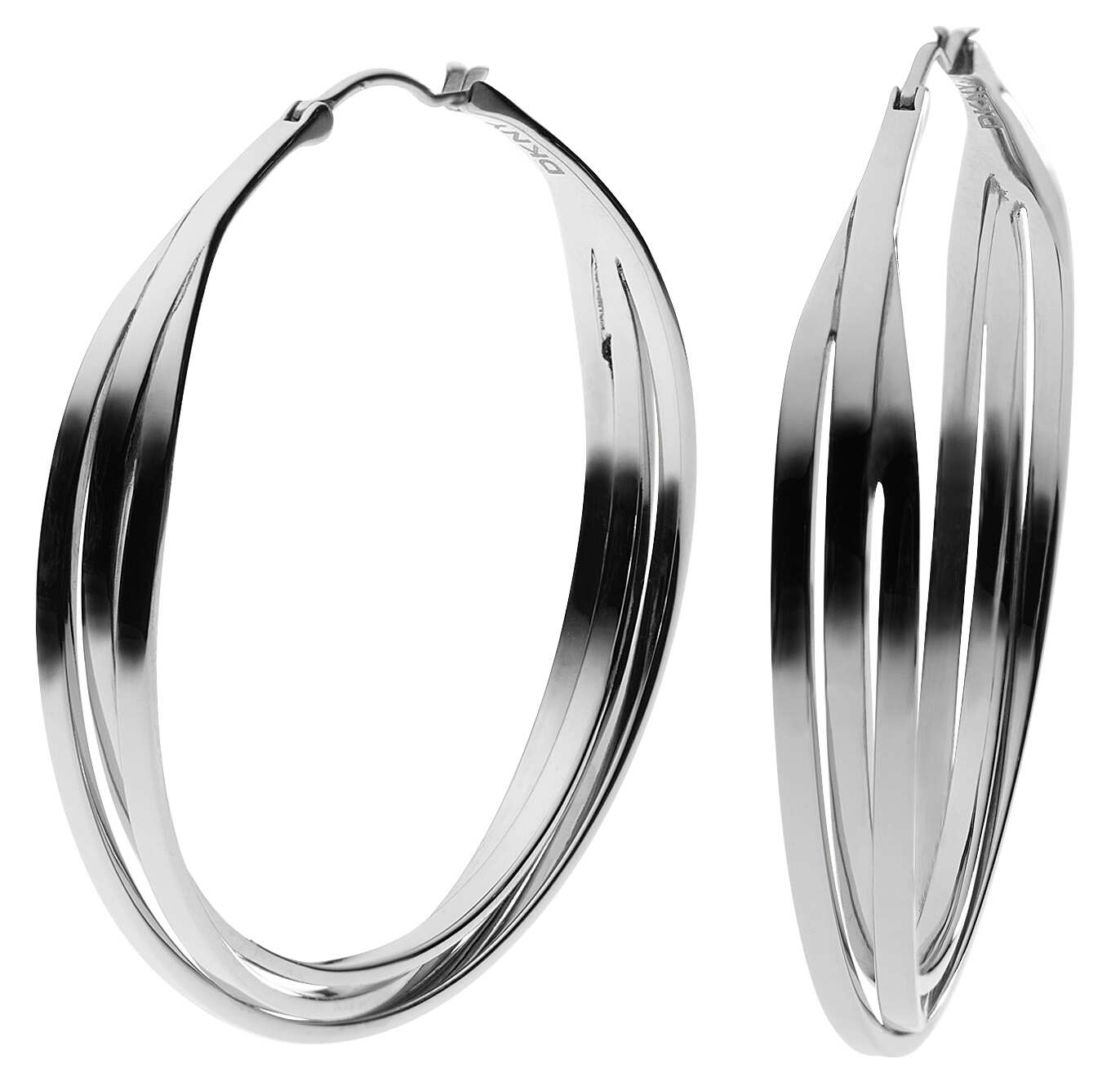 Naisten DKNY NJ2048040 rengaskorvakorut ovat valmistettu hopean värisestä ruostumattomasta teräksestä. Renkaan halkaisija on 4,2 cm. Tuote toimitetaan valmistajan alkuperäisessä rasiassa.