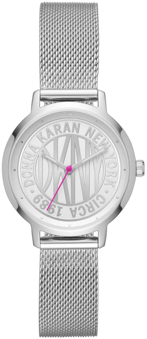 DKNY The Modernist NY2672 -rannekello on nimensä mukaisesti rohkeasti moderni ajan näyttäjä. Kellon runko ja ranneke ovat valmistettu hopean värisestä ruostumattomasta teräksestä. Erityisen tästä kellosta tekee sen kellotaulu, jota on koristeltu DKNY-aiheisilla teksteillä. Kellon rungon leveys on 32.4mm ja paksuus 8.4mm. Rannekkeen leveys kiinnityskohdasta on 14mm. DKNY kelloille myönnetään kahden vuoden takuu ja ne toimitetaan valmistajan alkuperäisessä pakkauksessa. Voimme kaivertaa veloituksetta kellon takakanteen esimerkiksi nimikirjaimet ja päivämäärän (maksimissaan 20 merkkiä). Valitse ensin kaiverrus ja kaiverruksessa käytettävä tekstityyli ja kirjoita kaiverrettavat tiedot "kaiverrettava teksti" -kenttään. Huom! Kaiverretuilla tuotteilla ei ole palautusoikeutta!