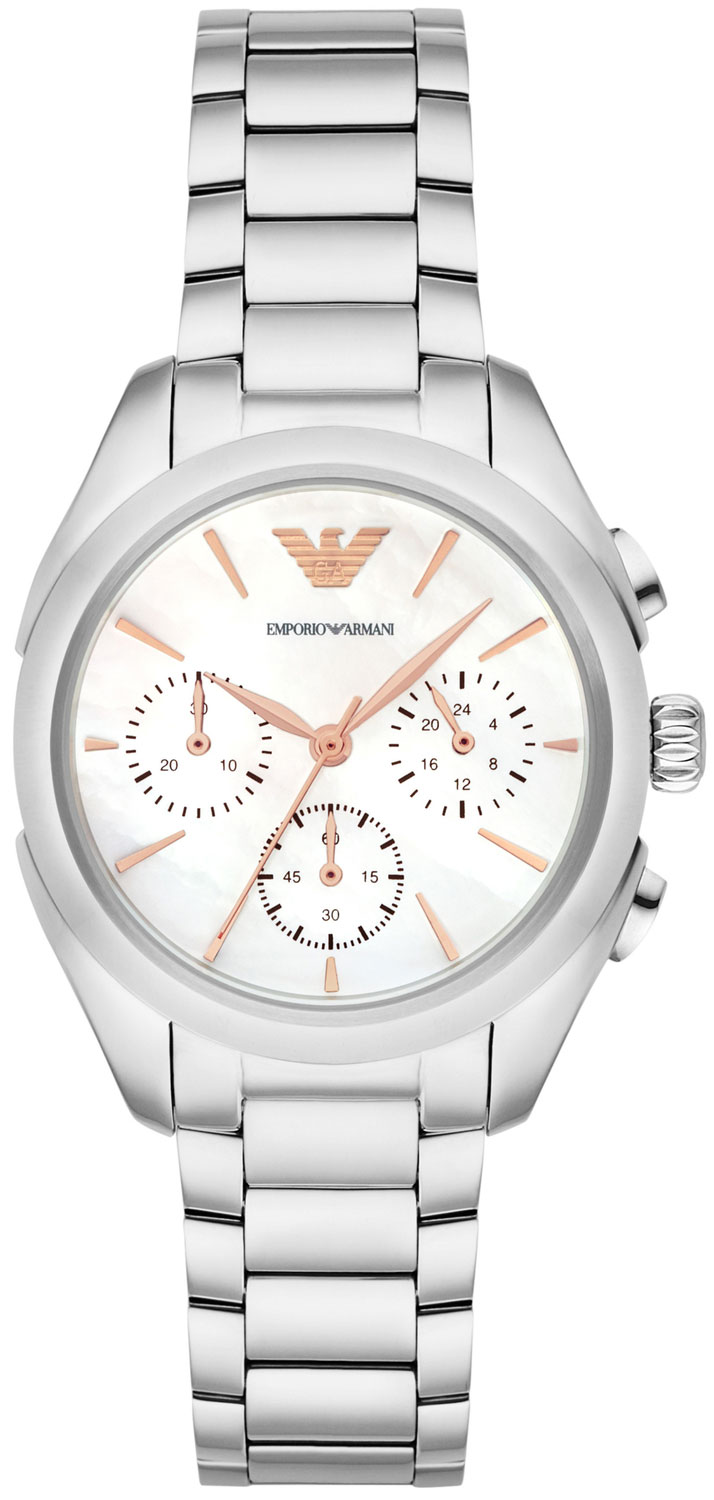 Emporio Armani AR11050 Chronograph-rannekello on elegantti ja hienostunut ajan näyttäjä. Kellon runko ja ranneke ovat valmistettu hopean värisestä ruostumattomasta teräksestä. Ominaisuuksina kellosta löytyy myös ajanotto 30 minuuttiin saakka sekä 24h näyttö. Kellon rungon leveys on 36mm ja paksuus 10mm. Rannekkeen leveys kiinnityskohdassa on 18mm. Emporio Armani kelloille myönnetään kahden vuoden takuu ja ne toimitetaan valmistajan alkuperäisessä pakkauksessa.