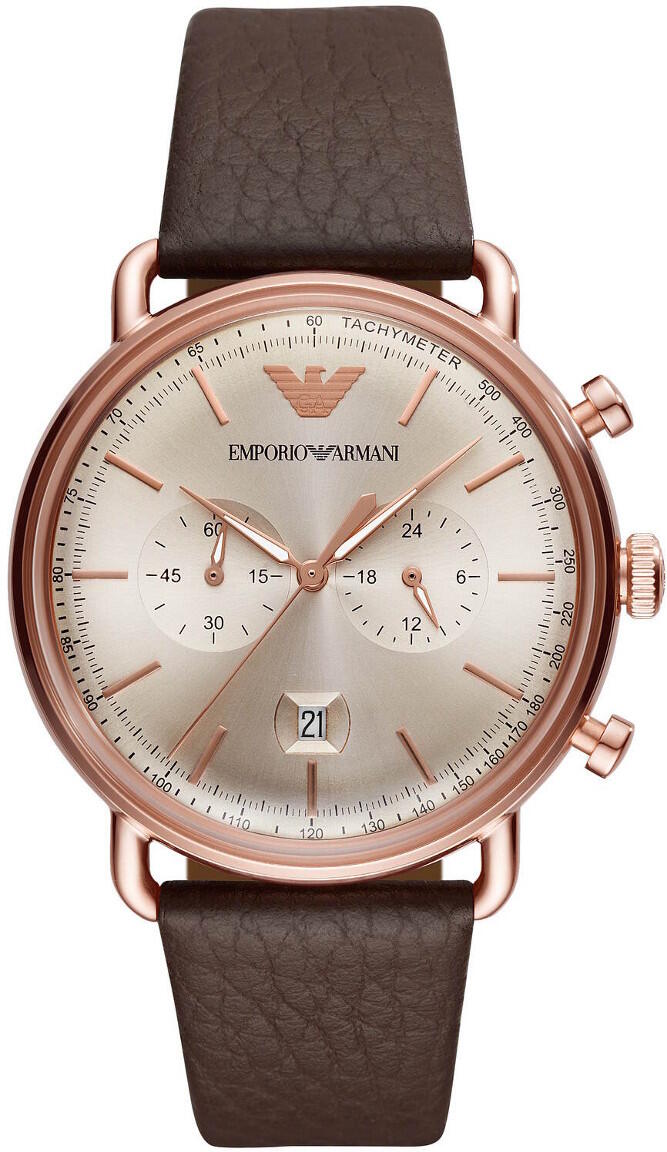 Emporio Armani AR11106 Aviator -kellossa on todella tyylikäs kupera lasi ja muutenkin mahtava muotoilu. Kellon rungon leveys on 43mm ja paksuus 12,7mm. Rannekkeen leveys kiinnityskohdasta on 22mm. Emporio Armani kelloille myönnetään kahden vuoden takuu ja ne toimitetaan valmistajan alkuperäisessä pakkauksessa.