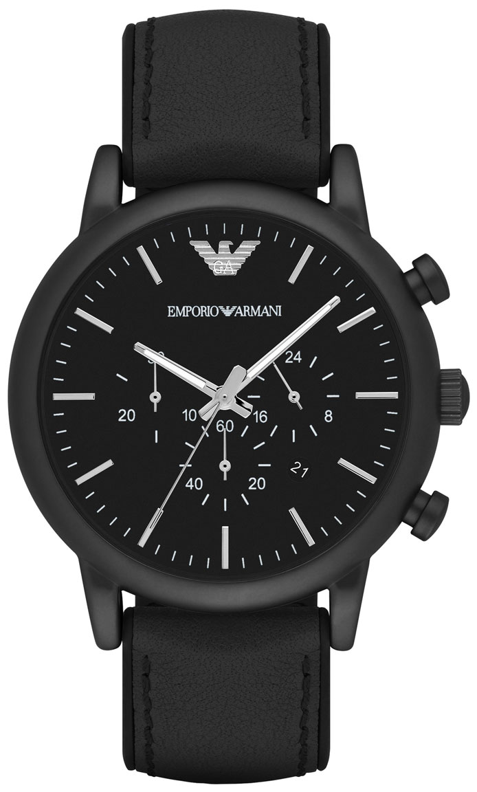 Emporio Armani AR1970 Luigi kellossa on näyttävä mattamusta runko ja ominaisuuksina ajanotto sekä päivyri. Kellossa on kumiranneke, joka on päällypuolelta vuorailtu nahalla. Kellon runko on leveydeltään 46mm ja paksuus 12mm. Rannekkeen leveys kiinnityskohdasta on 22mm. Laadukkaille Emporio Armani kelloille myönnetään kahden vuoden takuu ja ne toimitetaan valmistajan alkuperäisessä rasiassa.