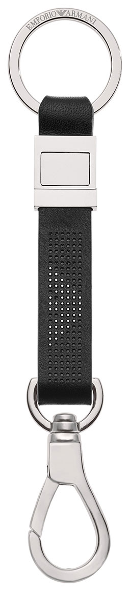 Emporio Armani EGS2549040 -avaimenperän avulla pidät avaimet helposti tallessa. Avaimenperä on valmistettu teräksestä, ja lukko on helppo sujauttaa kiinni esimerkiksi vyölenkkiin. Keskiosa on mustaa nahkaa. Avaimenperän koko on 56 x 22 x 8 mm. Emporio Armani-tuotteet toimitetaan valmistajan alkuperäisessä rasiassa.