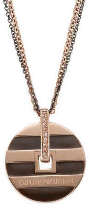 Emporio Armani EGS1587200 kaulakoru on valmistettu ruostumattomasta teräksestä ja on punakullan värinen. Kaulakoru on 41/43/45 cm pitkä (säädettävissä). Riipusosassa on zirconia korukiviä ja sen halkaisija on 26,5mm. Emporio Armani korut toimitetaan valmistajan alkuperäisessä rasiassa.