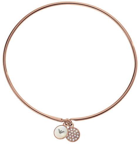 Emporio Armani EGS2155221 -rannekoru on sykähdyttävä ilmestys. Jännittävä yhdistelmä ylellisiä materiaaleja tekee tästä korusta hyvin ainutlaatuisen. Punakullan värinen rengas on valmistettu ruostumattomasta teräksestä ja sen halkaisija on 6 cm. Armani-logolla varustetun levyn pinnassa on valkoista helmiäistä. Viereistä levyä koristavat puolestaan kirkkaat zirkoniat. Toimitus valmistajan alkuperäisessä pakkauksessa.