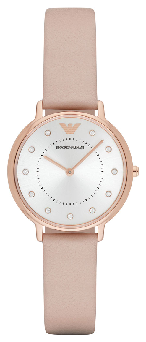 Emporio Armani Kappa AR2510 -rannekello on malliesimerkki legendaarisesta Armani-viehätyksestä. Ruusukullanvärinen teräsrunko on halkaisijaltaan 32 mm. Kellossa on vaalea nahkaranneke ja hopeanvärinen taulu. Tyylikkään ilmeen viimeistelee kellotauluun istutetut kristallit. Emporio Armani -kelloilla on 2 vuoden takuu, ja ne toimitetaan valmistajan alkuperäisessä pakkauksessa.
