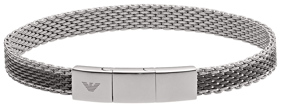Miesten Emporio Armani EGS2588040-rannekoru on valmistettu mesh-teräspunoksesta, ja korussa on kaksivärinen ilme, ja sileä säädettävä lukko, jolla ranneke on helppo säätää omaan ranteeseen sopivaksi. Emporio Armani-korut toimitetaan valmistajan alkuperäisessä rasiassa.