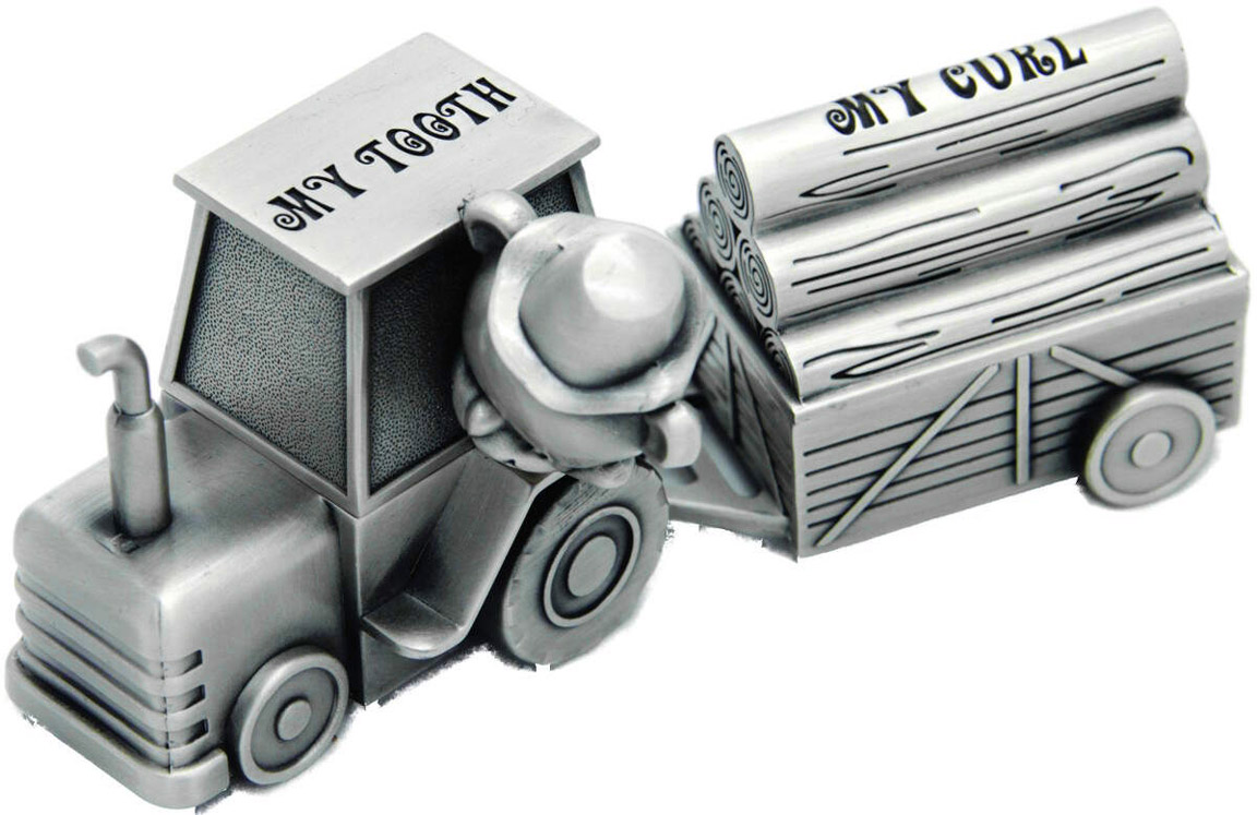 Ensihammas- ja ensikihararasia, Traktori, CK1141. Persoonallinen lahja pienelle pojalle. Traktorista kurkistaa suloinen nalle. Ensihampaan paikka sijaitsee traktorin kopin alla ja ensikiharan saa säilöön tukkien alle.