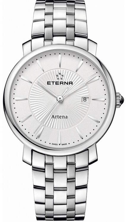 Eterna Artena 2510.41.11.0273 on klassinen naisten kello. Mallissa on Etan calibre 956.412 paristokoneisto. Kellon rungon leveys on 34mm ja paksuus 8,82mm. Kellotaulun suojana on heijastamaton K1 mineraalilasi. Eterna kellot toimitetaan valmistajan alkuperäisessä rasiassa ja niille myönnetään 2 vuoden takuu.