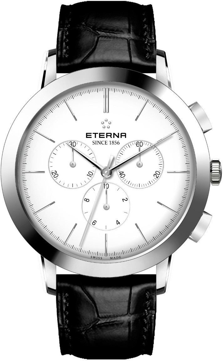 Sveitsiläisessä Eterna Eternity Chronograph 2760.41.10.1383 -rannekellossa on huippulaadukas Ronda 5040.B -paristokoneisto. Tässä tyylikkäässä miesten mallissa runko on 42 mm leveä ja valmistettu ruostumattomasta teräksestä. Musta ranneke on materiaaliltaan aitoa nahkaa ja valkoista kellotaulua suojaa heijastamaton, kupera safiirilasi. Mukana lisäksi kymmenyksien tarkkuudella toimiva sekuntikello.