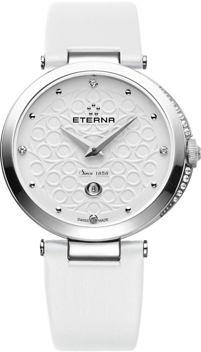 Eterna Grace Two Hand 2566.54.60.1373 kellosa on valkoinen satiinipintainen nahkaranneke ja kellon rungon oikealle puolelle on istutettu 12 timanttia. Mallissa on Rondan calibre 774 paristokoneisto. Kellon rungon leveys on 32mm ja paksuus 6,6mm. Kellotaulun suojana on heijastamaton safiirilasi. Eterna kellot toimitetaan valmistajan alkuperäisessä rasiassa ja niille myönnetään 2 vuoden takuu.