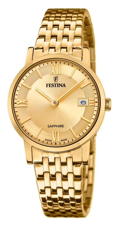 Festina Swiss Made F20021/2 -rannekellossa on ruostumaton 29,5 mm leveä teräsrunko. Kello on saanut ilmeensä Festinan alkuperäisistä kellomalleista, ja siinä on kullanvärinen runko, ranneke sekä kellotaulu. Rungon paksuus on vain 6,7 mm ja rannekkeen leveys kiinnityskohdasta 15 mm. Päivyri on sijoitettu kello kolmeen. Festina kelloille myönnetään 2 vuoden takuu ja ne toimitetaan valmistajan alkuperäisessä rasiassa.