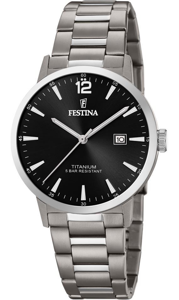 Festina Titanium F20435/3-kello on yksinkertaisen tyylikäs kokonaisuus, jossa on musta kellotaulu hopeanvärisessä titaanirungossa. Ranneke on harjattua ruostumatonta terästä. Rungon leveys on 41mm, paksuus on 9mm, ja rannekkeen kiinnityskohdan leveys 21mm. Kellossa on lisätoimintona päivyri. Festina-kelloille myönnetään 2 vuoden takuu, ja ne toimitetaan valmistajan alkuperäisessä rasiassa.