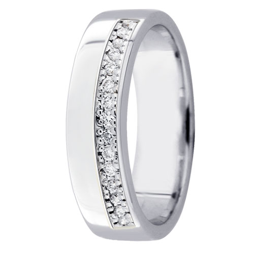 Tyylikäs Ariel Side-sormus antaa klassiselle rivitimanttisormukselle, ajankohtaisen ilmeen. Korun runko on leveydeltään 5mm ja se on muotoiltu laadukkaasta hopean sävyisestä valkokullasta. Kullan karaateiksi voit valita joko 14K tai 18K. Timanttiriviä koristaa 15 kirkasta Wesselton-timanttia, jotka on istutettu vieriviereen. Timantit on hiottu loisteen maksimoivalla briljantti-hionnalla ja ne täyttävät tasokkaan SI-luokan puhtausasteikolla. Sormuksesta on saatavilla myös keltakultaversio.