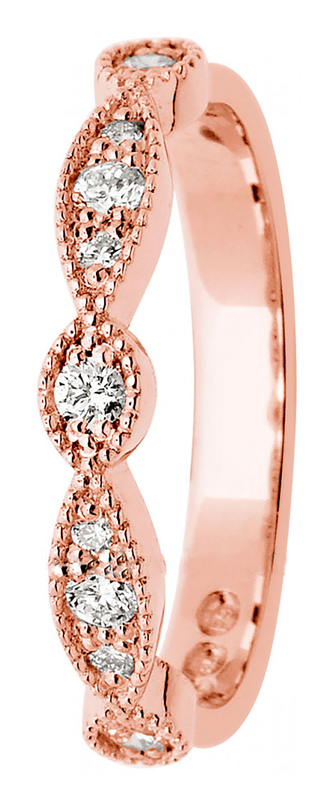 Kaunis koristeelllinen Edith-timanttisormus on Marko Osalan luomus kotimaiselle Festivelle. Punakultainen sormus on valmistettu laadukkaasta jalometallista, jonka karaateiksi voit valita joko 14k tai 18k (sama sormus on saatavilla myös valko- ja keltakultaisena). Monikivistä sormusta koristaa 9 kaunista Wesselton-timanttia, jotka on hionttu klassisella briljantti-hionnalla. Timantit ovat kooltaan 5x0.03ct ja 4x0.01ct ja täyttävät SI-luokan puhtausskaalalla. Sormus on leveydeltään 3mm.