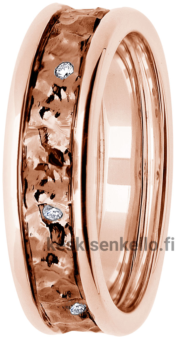 Festiven siro monikivinen peruskallio-sormus muistuttaa muotoilultaan suomenluonnolle ominaista kalliopintaa. Annika Takasen suunnittelema sormus on täydellinen sekoitus klassista ja ajatonta muotoilua. Punakultainen sormus on saatavilla joko 14K tai 18K punakullasta (sama sormus saatavilla myös keltakultaisena, valkokultaisena tai eri jalometallien yhdistelminä). Sormus on leveydeltään 5.5mm ja sitä koristaa 5 0.01 karaatin kirkasta Wesselton-timanttia. Briljantti-hiotut timantit on upotettu kauniisti sormuksen pintaan.