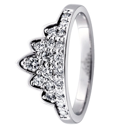 Kotimainen Festive tunnetaan laadukkaasta korumuotoilusta, joka on jo vuosikymmenet ollut hääparien suosima. Queen-sormus muistuttaa muotoilultaan kruunua ja on oikea valinta hänelle, joka etsii koristeellista sormusta persoonallisella ilmeellä. Sormuksen pintaan on istutettu yhdeksäntoista timanttia joiden karaatit ovat välillä 0.015-0.05. Timanttien yhteispaino on 0,4g. Kirkkaat Wesselton-timantit on hiottu klassisella briljantti-hionnalla, ja ne täyttävät tasokkaan SI-luokan puhtausskaalalla. Sormuksen runko on kaunista valkokultaa, jonka karaateiksi voit valita joko 14K tai 18K. Sormuksen leveys on rungon kohdalta 2,8mm ja timanttien kohdalta 8,5mm. Samasta sormuksesta löytyy myös keltakultaversio.
