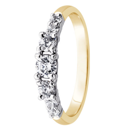 Kotimaisen Festiven säihkyvä Solina-sormus, kuuluu laadukkaaseen Luxury-mallistoon. Sormuksen pintaan on istutettu seitsemän kirkasta Wesselton-timanttia, jotka täyttävät tasokkaan SI-luokan timanttien puhtausasteikolla. Timanteista suurin on kooltaan 0.2ct. Suurta timanttia reunustaa kaksi 0.1ct timanttia, sekä neljä 0.03ct timanttia. Timantit on hiottu klassisella Briljantti-hionnalla ja niiden yhteispaino on 0.52g. Sormus on rungon kohdalta leveydeltään 2,2mm ja kivien kohdalta 3,8mm. Rungon muotoiluun on käytetty sekä kaunista hopean sävyistä valkokultaa ja klassista keltakultaa. Kullan karaateiksi voit valita 14K tai 18K toiveesi mukaan. Samasta korusta on myös täysin valkokultainen versio.