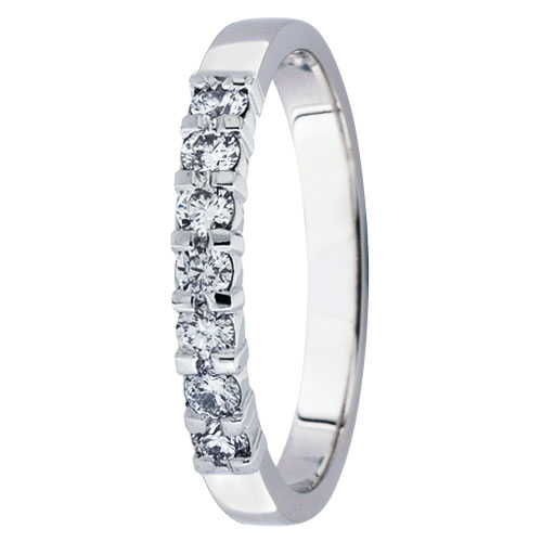 Kotimaisen Festiven kaunis Sophia-sormus on säihkyvä rivitimanttisormus. Sormusta koristaa seitsemän laadukasta Wesselton-timanttia, jotka ovat kooltaan 0.05ct ja hiottu klassisella briljantti-hionnalla. Kirkkaat timantit on istutettu vieriviereen täyttävät puhtausasteikolla SI-luokan. Sormuksen runko on valmistettu kauniista hopean hohtoisesta valkokullasta, jonka karaateiksi voit valita joko 14K tai 18K. Sormuksen leveys on 2,8mm.