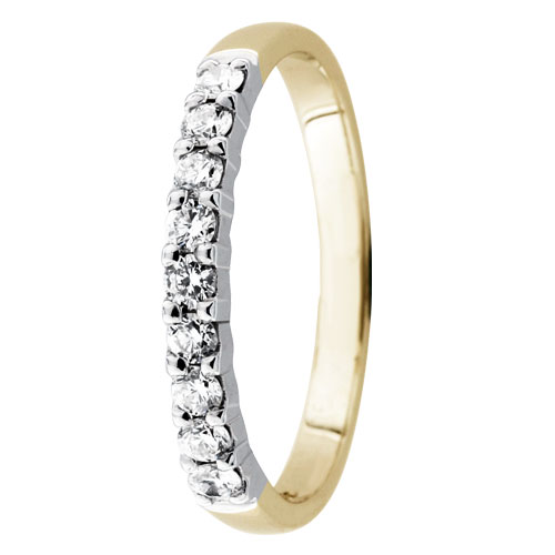 Hämeenlinnalaisen Festiven kauniit Sophia-rivitimanttisormukset tunnetaan timanttien loisteesta. Tätä korua koristaa kaunis yhdeksän 0.03ct timantin rivi, joka vangitsee katseet säihkeellään. Kirkkaat Wesselton-timantit on hiottu klassisella briljanttihionnalla, ja ne täyttävät SI-luokan puhtausskaalalla. Sormuksen rungossa on käytetty sekä kelta- että valkokultaa tyylikkäällä tavalla joka korostaa timantteja. Jalometallien karaateiksi voit valita joko 14K tai 18K. Samasta sormuksesta on olemassa myös hopean sävyinen versio, joka on muotoiltu käyttäen ainoastaan valkokultaa. Sormus on timanttien kohdalta leveydeltään 2,5mm ja rungon kohdalta 2,2mm.