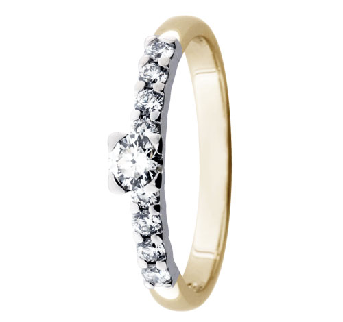 Rivitimanttisormukset tarjoavat näyttävää loistetta hänelle joka haluaa, että hääkorussa on ylellisyyden tuntua. Sophia Solitaire-sormus on kotimaisen Festiven taidonnäyte, jossa on yhdistelty sekä kelta- että valkokultaa timantteja korostavalla tavalla. Sormuksen jalometallien karaateiksi voit valita joko 14K tai 18K. Samasta sormusmallista on olemassa myös täysin valkokultainen versio. Korua koristaa säihkyvä kahdeksan 0.03ct timantin rivi, jonka keskellä loistaa suurempi 0.21ct timantti. Sormuksen timantit ovat kirkkaita Wesselton-timantteja, jotka on hiottu suositulla loisteen maksimoivalla briljanttihionnalla. Kivet täyttävät puhtausskaalalla SI-luokan, joka korostaa niiden kirkkautta entisestään. Sormuksen leveys on 2,5mm kapeimmasta kohdasta ja 4mm kivien kohdalta.