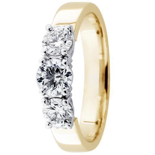 Hämeenlinnalaisen Festiven näyttävä Trilogy Trend-kultasormus kuuluu Festiven ylelliseen Luxury-mallistoon. Luxury-mallisto tarjoaa näyttävän kokoisten timanttien loistetta hänelle, joka haluaa astetta ylellisemmän vihkisormuksen. Trilogy Trend sormusta koristaa kolme kirkasta Wesselton-timanttia. Timantit täyttävät SI-luokan timanttien puhtausasteikolla ja ne on hiottu käyttäen klassista briljantti-hiontaa. Kooltaan korun timantit ovat 1 x 0.46ct ja 2 x 0.28ct ja niiden yhteispaino on 1.02g. Sormuksen runko on muotoiltu käyttäen sekä kelta- että valkokultaa. Kulta on 100% kierrätettyä ja sen karaateiksi voit valita joko 14K tai 18K. Samasta sormuksesta löydät valikoimastamme myös kauniin valkokultaversion. Sormuksen runko on kapeimmasta kohdasta leveydeltään 4mm ja timanttien kohdalta 5mm.