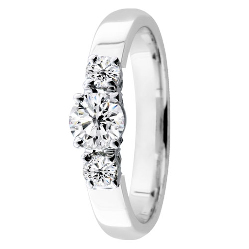 Suomalaisen Festiven kaunis Trilogy Trend sormus tarjoaa timanttien loistetta tätä etsivälle. Sormus kuuluu Festiven ylelliseen Luxury-mallistoon, jossa korujen muotoiluun on käytetty astetta näyttävämmän kokoisia timantteja. Tätä sormusta koristaa kolme kirkasta Wesselton-timanttia, joiden säihkettä korostavat timanttien SI-luokan puhtaus ja klassinen briljantti-hionta. Timantit ovat kooltaan 1 x 0.4ct + 2 x 0.1ct ja niiden yhteispaino on 0.6g. Sormuksen leveys on 3mm, ja sen runko on valmistettu laadukkaasta hopean värisestä valkokullasta. Valkokulta on täysin kierrätettyä, ja sen karaateiksi voi valita mielen mukaan 14K ai 18K.