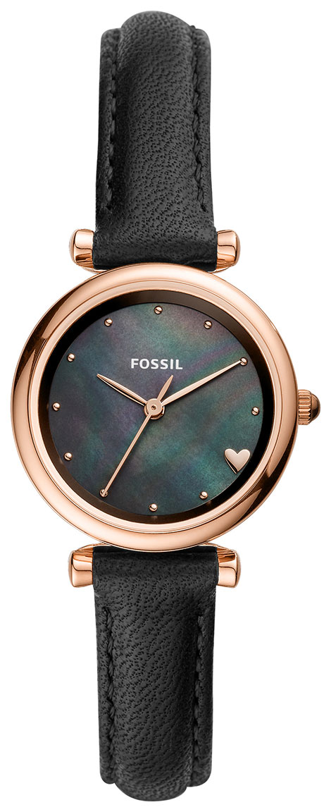 Fossil Carlie Mini ES4504 on sievä ja pienikokoinen rannekello, jonka helmiäispintainen kellotaulu näyttää auringonvalossa todella upealta! Lisäksi luminoituvat viisarit takaavat näppärän käytön pimeälläkin. Kello on valmistettu ruusukullan värisestä ruostumattomasta teräksestä ja sen kellotaulua suojaa mineraalilasi. Carlie Minin mitat ovat nimensä mukaisesti hyvin sirot, rungon leveyden ollessa 28 mm ja rannekkeenkin ainoastaan 12 mm.