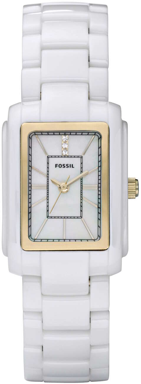 Naisten Fossil CE1027 rannekellon runko ja ranneke ovat valmistettu valkoisesta keramiikasta. Rungon leveys on 24 mm ja paksuus 10 mm. Rannekkeen leveys kiinnityskohdasta on 17 mm. Fossil kelloille myönnetään 2 vuoden takuu ja ne toimitetaan valmistajan alkuperäisessä rasiassa.