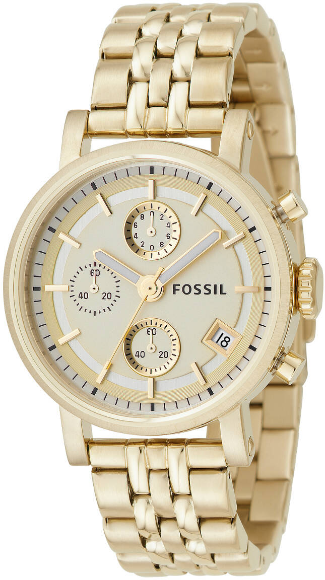 Fossil ES2197 Original Boyfriend -kellossa yhdistyvät käytännöllinen design ja kultainen olemus. Kellon kullanvärinen runko ja ranneke on valmistettu ruostumattomasta teräksestä. Ominaisuuksina kellosta löytyy myös ajanotto sekä päivyri. Kellon rungon leveys on 38mm ja paksuus 12mm. Rannekkeen leveys kiinnityskohdasta on 18mm. Fossil -kelloille myönnetään 2 vuoden takuu ja ne toimitetaan valmistajan alkuperäisessä rasiassa. Voimme kaivertaa veloituksetta kellon takakanteen esimerkiksi nimikirjaimet ja päivämäärän (maksimissaan 20 merkkiä). Valitse ensin kaiverrus ja kaiverruksessa käytettävä tekstityyli ja kirjoita kaiverrettavat tiedot "kaiverrettava teksti" -kenttään. Huom! Kaiverretuilla tuotteilla ei ole palautusoikeutta!