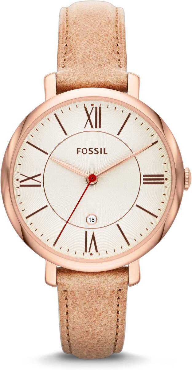 Fossil ES3487 Jacqueline Sand Leather kellossa on muodikas hiekanruskea nahkaranneke ja luonnonvalkoinen kellotaulu. Kellon runko on leveydeltään 36mm ja paksuus 8mm. Rannekkeen leveys kiinnityskohdasta on 14mm. Laadukkaille Fossil kelloille myönnetään kahden vuoden takuu ja ne toimitetaan valmistajan alkuperäisessä rasiassa.