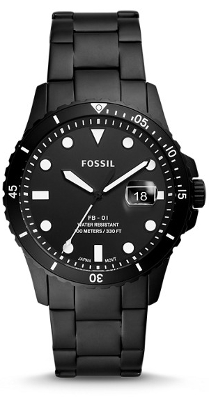 Miesten Fossil FB-01 FS5659-rannekello on saanut inspiraationsa sukeltajankellosta, ja siinä on 42 mm leveä runko ja musta sunray-taulu, ja 22 mm leveä turvalukollinen musta teräsranneke. Suuret osoittimet ja indeksit on luminoitu, ja ne näkyvät myös pimeässä, ja kolmannen indeksin kohdalla on päivyri. Kello on vedenkestävä 100 m saakka, jonka vuoksi kellon kastumisesta ei tarvitse huolehtia. Fossil-kellot toimitetaan valmistajan alkuperäisessä pakkauksessa, ja niillä on 2 vuoden takuu.