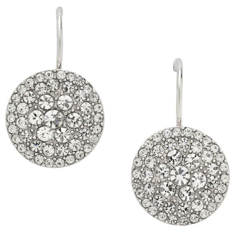 Naisten Fossil JF00134 korvakorut koukkukiinnityksellä. Koru on valmistettu ruostumattomasta teräksestä ja se on hopean värinen. Riipuksen halkaisija on 13mm ja siinä zirkonikoristekiviä. Koru toimitetaan valmistajan alkuperäisessä rasiassa.
