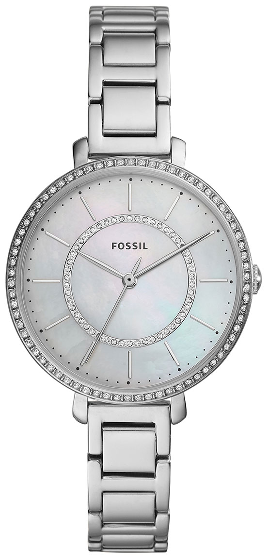 Fossil Jocelyn ES4451 on rannekello, jollaisesta olet aina haaveillut: siron naisellinen, kimaltava ja kaikin puolin näyttävä kokonaisuus. Helmiäiskellotaulu ja sitä kiertävät kirkkaat zirkoniat saavat takuulla pääsi pyörälle! Kello on valmistettu hopeanvärisestä ruostumattomasta teräksestä ja laadukkaasta mineraalilasista. Tässä mallissa rungon halkaisija on 36 mm ja rannekkeen leveys 12 mm.