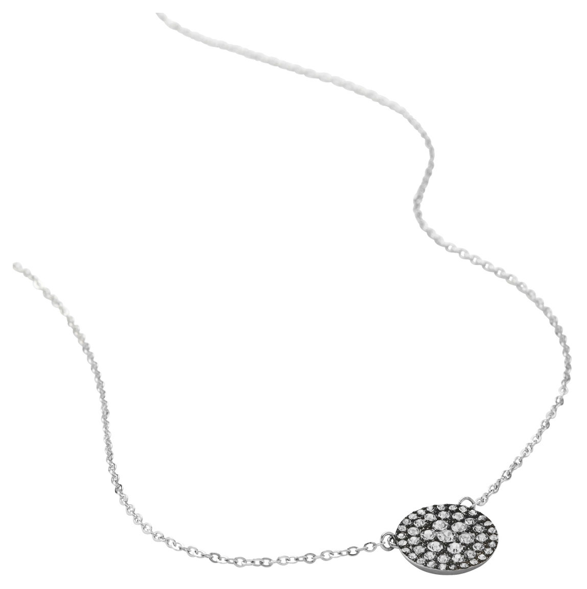Fossil JF00138040 on kaunis hopeanvärinen ruostumattomasta teräksestä valmistettu naisten kaulakoru. Korun riipusta koristaa kristallit. Korun pituus on 420-470 mm. Lukkona on kätevä hummerilukko. Fossil-korut toimitetaan valmistajan alkuperäisessä pakkauksessa.