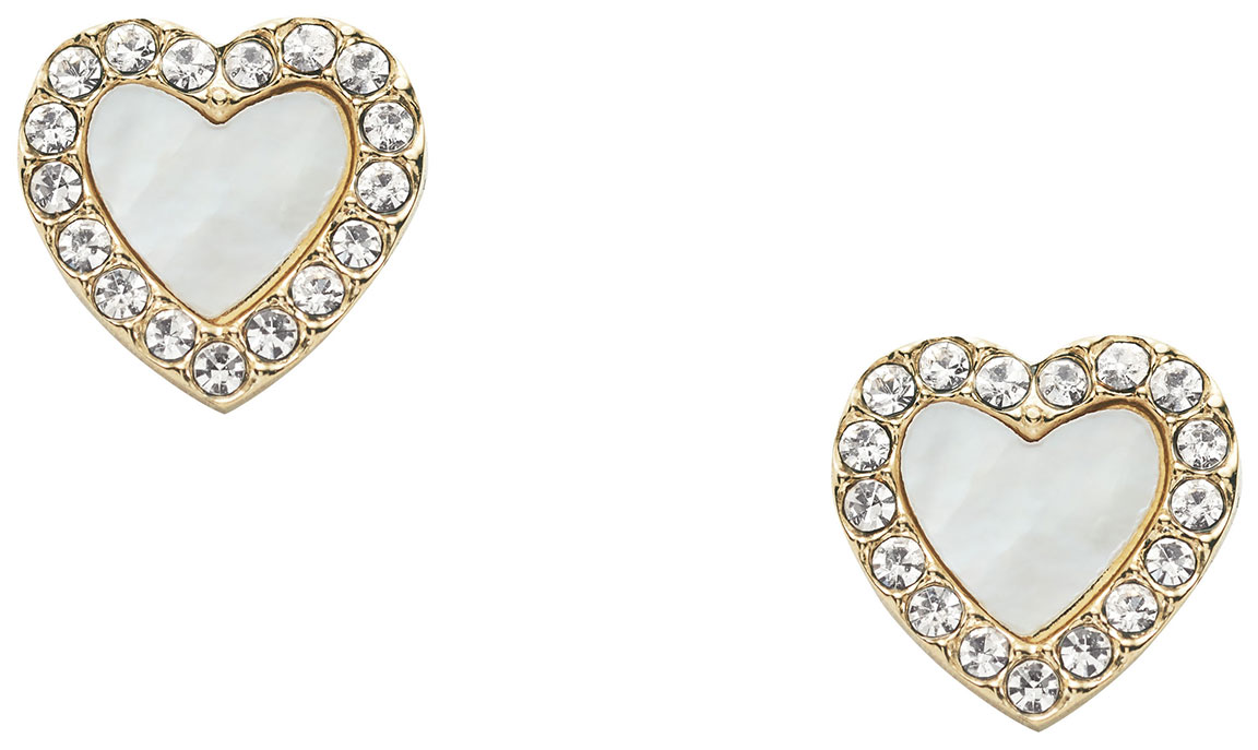 Fossil Heart Gold-Tone Stainless Steel Studs JF03215710 -sydänkorvakorut on valmistettu kullanvärisestä ruostumattomasta teräksestä. Korukivillä koristellut korvakorut ovat kooltaan 9 mm. Fossil-korut toimitetaan valmistajan alkuperäisessä rasiassa.