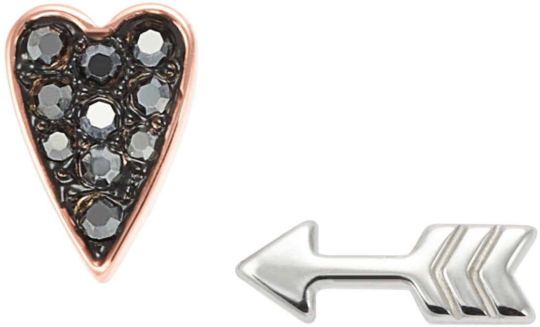 Fossil Valentine Hearts JF01639998 nappikorvakorut ovat saaneet inspiraationsa Ystävänpäivästä ja Amorin sinkoilevista nuolista. Ruostumattomasta teräksestä valmistetun setin toinen koru on harmailla kristalleilla koristeltu ruusukullansäyinen sydän ja toinen on hopeanvärinen nuoli. Korvakorut ovatkin oiva lahja sekä rakkautta etsiville että sen jo löytäneille. Koru toimitetaan valmistajan alkuperäisessä pakkauksessa.