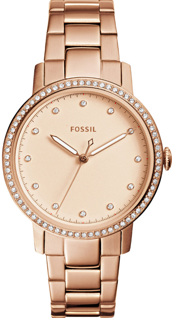 Fossil Neely ES4288-rannekello sopii yksinkertaisen muotoilunsa vuoksi jokapäiväiseen käyttöön. 34 mm:n levyisessä rungossa on ruusukullansävyinen satiiniharjattu numeroimaton kellotaulu, jossa on kauniit luminoidut osoittimet. Indeksit on korvattu kristallein. Kristallit ympäröivät myös kellokehää ja kellotaulua suojaa hieman kupera vintage-henkinen mineraalilasi. Linkkulukon ansiosta kello on helppo pukea ylle. Rannekkeen kiinnityskohdan leveys on 16 mm:iä. Fossil-kellot toimitetaan valmistajan alkuperäisessä pakkauksessa, ja niillä on 2 vuoden takuuaika.