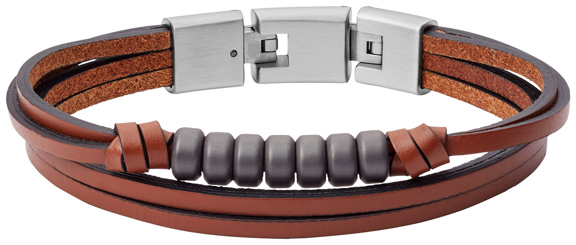 Fossil rannekoru Multi-Strand Haematite and Brown Leather Bracelet JF03128040