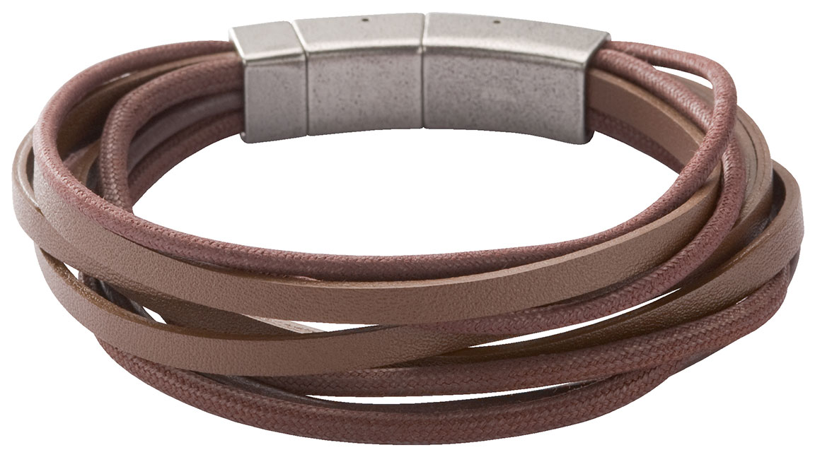 Fossil Multi-Wrap Brown JF86202040 -rannekoru on valmistettu ruostumattomasta teräksestä ja ruskeasta aidosta nahasta. Korun pituus om 20,5 - 22 cm. Fossil-korut toimitetaan valmistajan alkuperäisessä rasiassa.