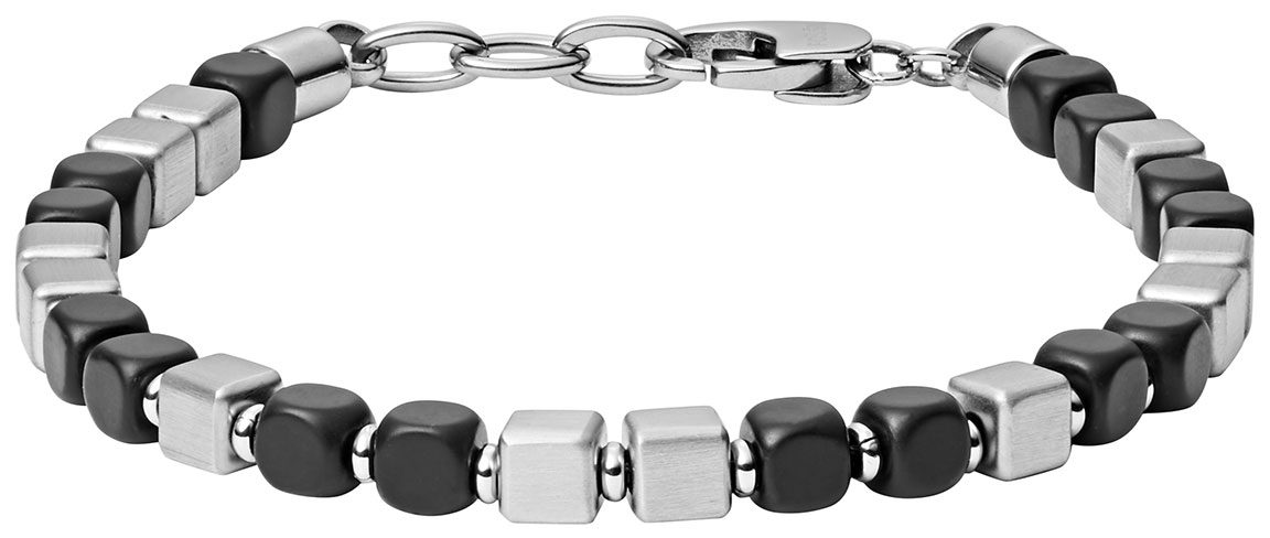Fossil Square Tiger's Eye and Stainless Steel Beaded JF03123040 -rannekoru on valmistettu ruostumattomasta teräksestä. Rannekorun pituus on 180-195 mm. Korun kiinnitys tapahtuu hummerilukolla. Fossil-korut toimitetaan valmistajan alkuperäisessä pakkauksessa.