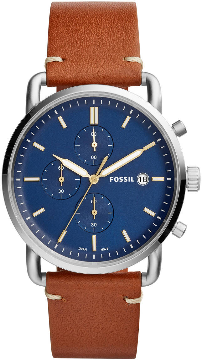 Fossil The Commuter FS5401 Chronograph-kello on rento ja käytännöllinen. Kellon runko on valmistettu hopean värisestä ruostumattomasta teräksestä ja tummanruskea ranneke on aitoa nahkaa. Ominaisuuksina kellosta löytyy myös ajanotto 60 minuuttiin saakka sekä päivyri. Kellon rungon leveys on 42.4mm ja paksuus 11.4mm. Rannekkeen leveys kiinnityskohdasta on 22mm. Fossil kelloille myönnetään kahden vuoden takuu ja ne toimitetaan valmistajan alkuperäisessä pakkauksessa. Voimme kaivertaa veloituksetta kellon takakanteen esimerkiksi nimikirjaimet ja päivämäärän (maksimissaan 20 merkkiä). Valitse ensin kaiverrus ja kaiverruksessa käytettävä tekstityyli ja kirjoita kaiverrettavat tiedot "kaiverrettava teksti" -kenttään. Huom! Kaiverretuilla tuotteilla ei ole palautusoikeutta!
