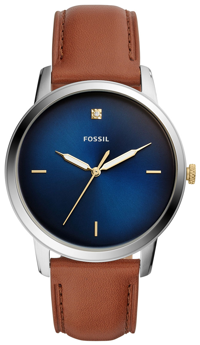 Fossil The Minimalist FS5499 -rannekellon pehmeät linjat ovat malliston tavaramerkki. Selkeä muotoilu yhdistyy ruskean ja sinisen sävyihin luoden todellisen herrasmiehen kellon. Kellon 44 mm leveä runko on valmistettu ruostumattomasta teräksestä. Komeuden kruunaa 22 mm leveä ruskea nahkaranneke. Kellotaulussa säväyttävät luminoituvat viisarit sekä upea yläreunaan asetettu timantti. Tutustu myös muihin näyttäviin Minimalist -sarjan tuotteisiin!