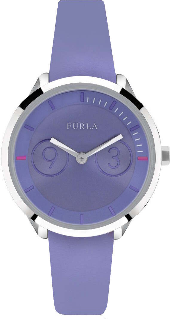 Furla Metropolis 31mm Lilac R4251102506 kellossa on violetti nahkaranneke, violetti kellotaulu ja hopeanvärinen runko. Kellotaulua koristavat isot indeksit kello kolmessa ja yhdeksässä. Tämä asettelu on saanut inspiraationsa Furlan Metropolis laukun ikonisesta lukosta. Rungon leveys on 31mm. Furla kelloille myönnetään kahden vuoden takuu ja ne toimitetaan valmistajan alkuperäisessä rasiassa.