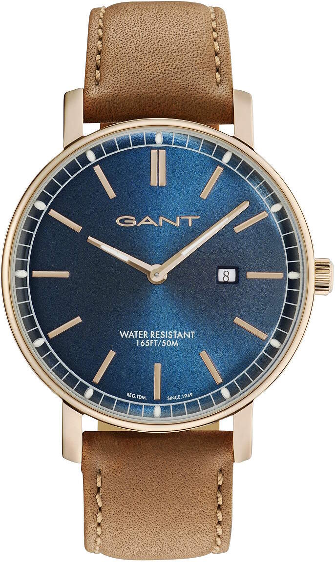 Gant GT006016 Nashville -kellossa on todella tyylikäs muotoilu. Tässä mallissa on punakullan värinen runko, sininen kellotaulu ja ruskea nahkaranneke. Rungon leveys on 42 mm ja paksuus 9 mm. Koneistona laadukas Japanilainen Miyota GM15 paristokoneisto. Rannekkeen leveys kiinnityskohdasta on 20 mm. Gant kelloille myönnetään kahden vuoden takuu ja ne toimitetaan valmistajan alkuperäisessä rasiassa.