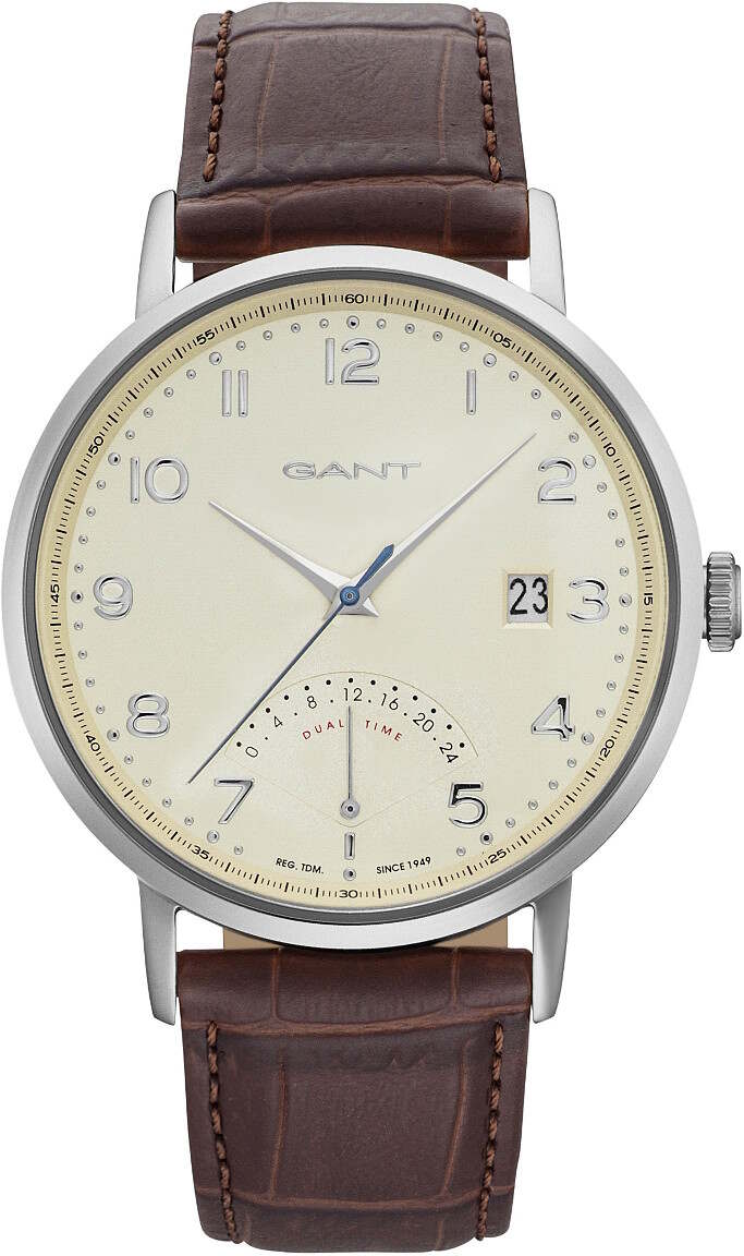 Gant GT022002 Pennington kellossa on kaksoisajan osoitin kello kuudessa. Voit siis asettaa kellon halutessasi näyttämään kahden eri aikavyöhykkeen aikaa. Tässä versiossa on samppanjanvärinen kellotaulu, ruskea nahkaranneke sekä hopeanvärinen runko. Rungon leveys on 42 mm ja paksuus 8 mm. Rannekkeen leveys kiinnityskohdasta on 20 mm. Gant kelloille myönnetään kahden vuoden takuu ja ne toimitetaan valmistajan alkuperäisessä rasiassa.