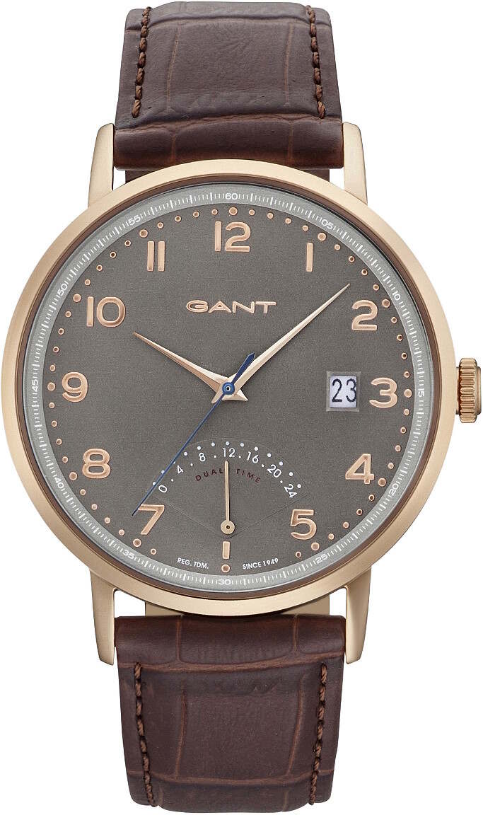 Gant GT022004 Pennington kellossa on kaksoisajan osoitin kello kuudessa. Voit siis asettaa kellon halutessasi näyttämään kahden eri aikavyöhykkeen aikaa. Tässä versiossa on harmaa kellotaulu, ruskea nahkaranneke sekä punakullan värinen runko. Rungon leveys on 42 mm ja paksuus 8 mm. Rannekkeen leveys kiinnityskohdasta on 20 mm. Gant kelloille myönnetään kahden vuoden takuu ja ne toimitetaan valmistajan alkuperäisessä rasiassa.