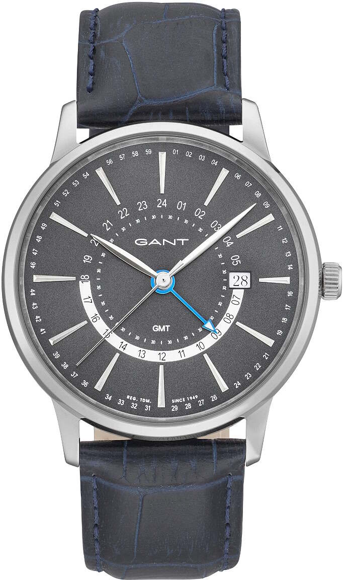 Gant GT026001 Chester kellossa on päivyri sekä kaksoisaika viisari 24 tunnin kierrolla. Voit siis asettaa kellon kahden eri aikavyöhykkeen aikaan. Tässä mallissa on harmaa kellotaulu, tummansininen nahkaranneke sekä hopeanvärinen runko. Rungon leveys on 42 mm ja paksuus 9 mm. Rannekkeen leveys kiinnityskohdasta on 22 mm. Gant kelloille myönnetään kahden vuoden takuu ja ne toimitetaan valmistajan alkuperäisessä rasiassa.